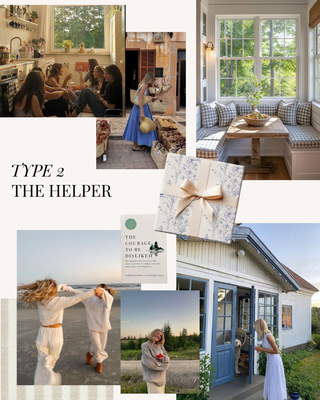 Enneagram Type 2, known as The Helper or The Giver, is warm, generous, and deeply attuned to the needs of others. Super connectors and loyal friends, twos are motivated by a desire to feel loved and valued, often expressing this through acts of service, support, and emotional connection. They take pride in being needed and are quick to offer care and encouragement, often putting others' needs before their own. At their best, 2s are unselfish, nurturing, and truly altruistic; at their worst, they can become people-pleasing, overly dependent on others’ approval, and resentful if their efforts go unrecognized. Their core fear is being unwanted or unloved, and their core desire is to feel loved and appreciated for who they are.