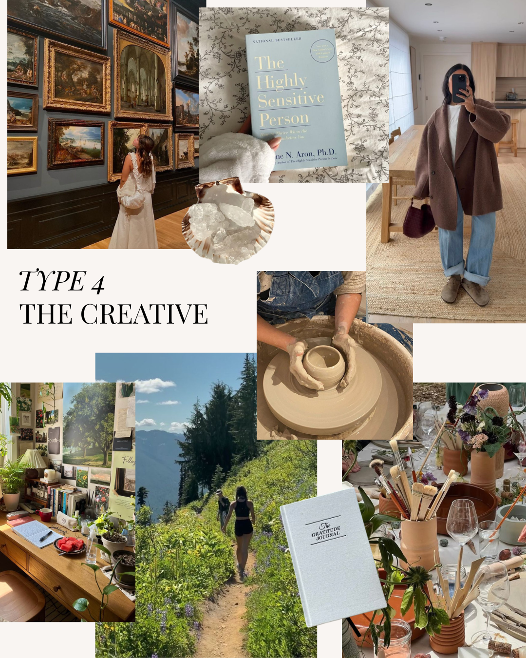 Enneagram Type 4, known as The Creative or The Individualist, is introspective, emotionally rich, and deeply attuned to beauty and meaning. Fours are driven by a desire to understand their identity and express their uniqueness, often feeling a sense of longing or that something essential is missing. They value authenticity and depth, and they seek emotional connection and creative expression in all areas of life. At their best, Fours are empathetic, creative, and emotionally honest; at their worst, they can become moody, self-absorbed, or envy others who seem to have what they lack. Their core fear is being flawed or insignificant, and their core desire is to be seen and loved for who they truly are.
